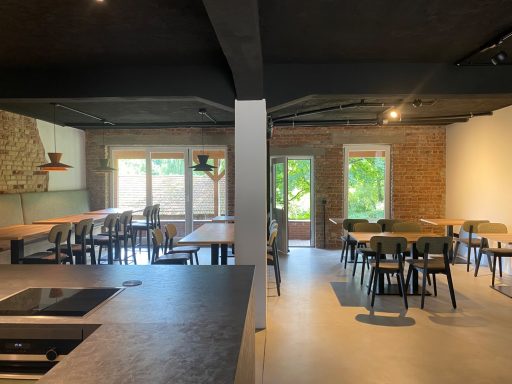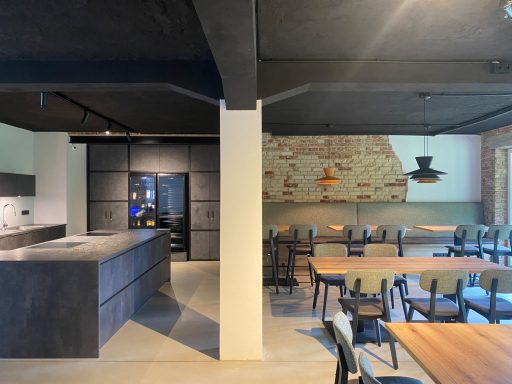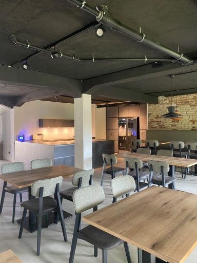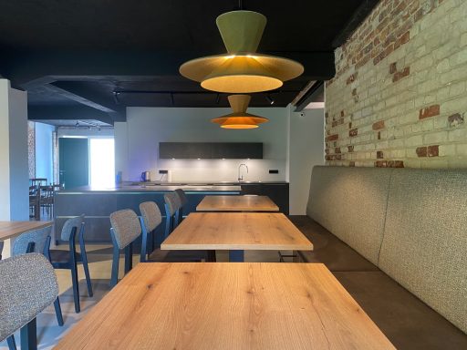 Der Entwurf wurde mit großer Begeisterung angenommen. Auch unsere Material- & Gestaltungs-vorschläge fanden großen Anklang und wurden vollständig umgesetzt. So entstand aus einem landwirtschaftlichen Gebäude eine zeitgemäße und einladende Kantine für die Mitarbeitenden.
