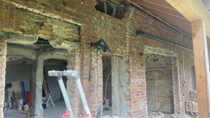 Schon beim ersten Ortstermin war für Lisa klar, dass die bestehenden Mauerwerkswände unbedingt erhalten werden sollten. Was für die Bauherren zunächst schwer vorstellbar war, entwickelte sich zu einem zentralen Gestaltungselement: Die rohe Oberfläche verleiht dem Raum heute Identität und Charakter – bewusst unverputzt und selbstbewusst gezeigt.